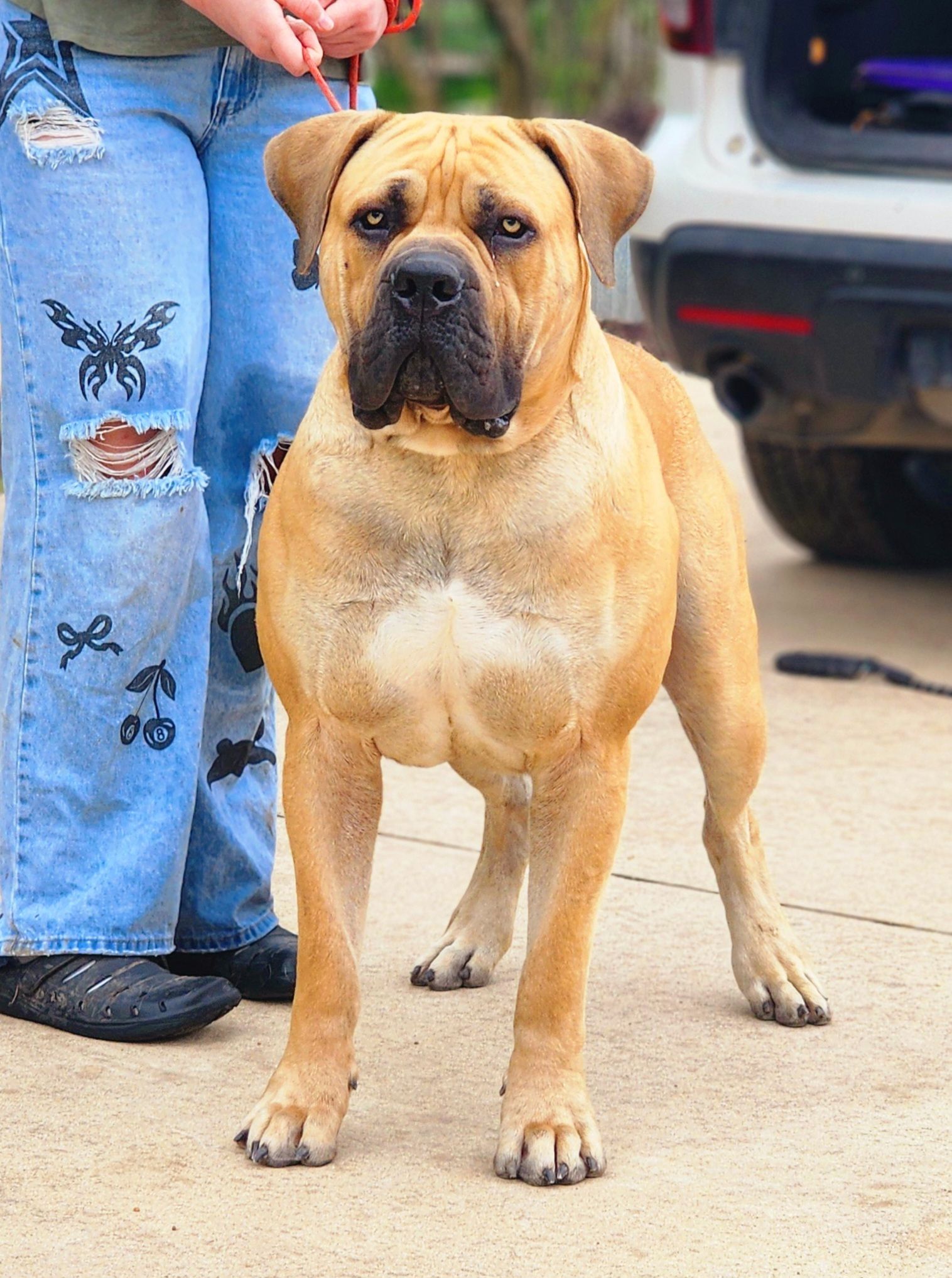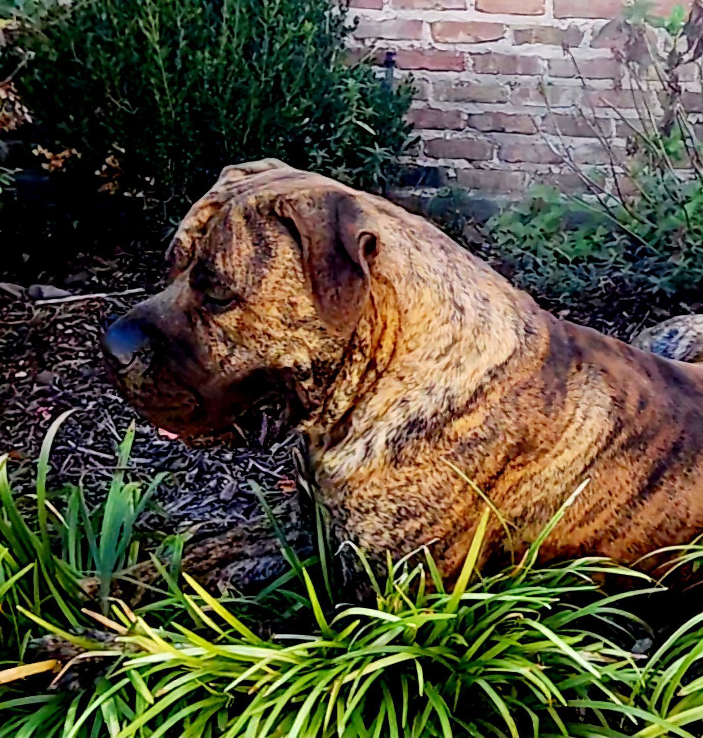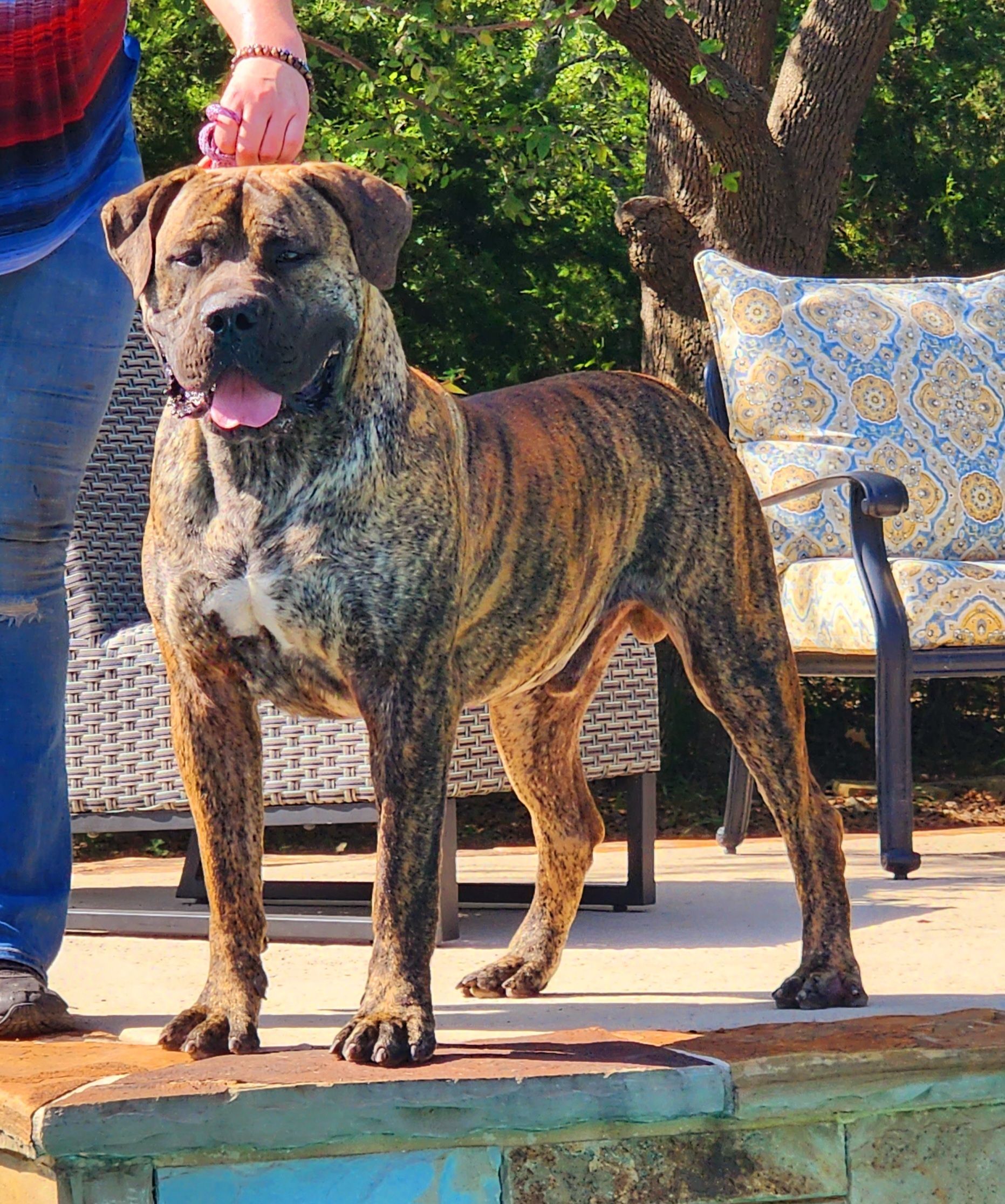 Orion was a stunning puppy. He was born here at Leontix. We knew he was special from the very beginning. Orion is owned by our friends, and they have done a wonderful job socializing him. He is fabulous with their small children, cattle, small dogs, and is even a hit at the Doggy Day Care he attends occasionally. Orion is fully health tested, has been appraised by SABBS is in the Stud Book, registered with AKC, and will soon be appraised by NABBA. He is available for Stud Services.