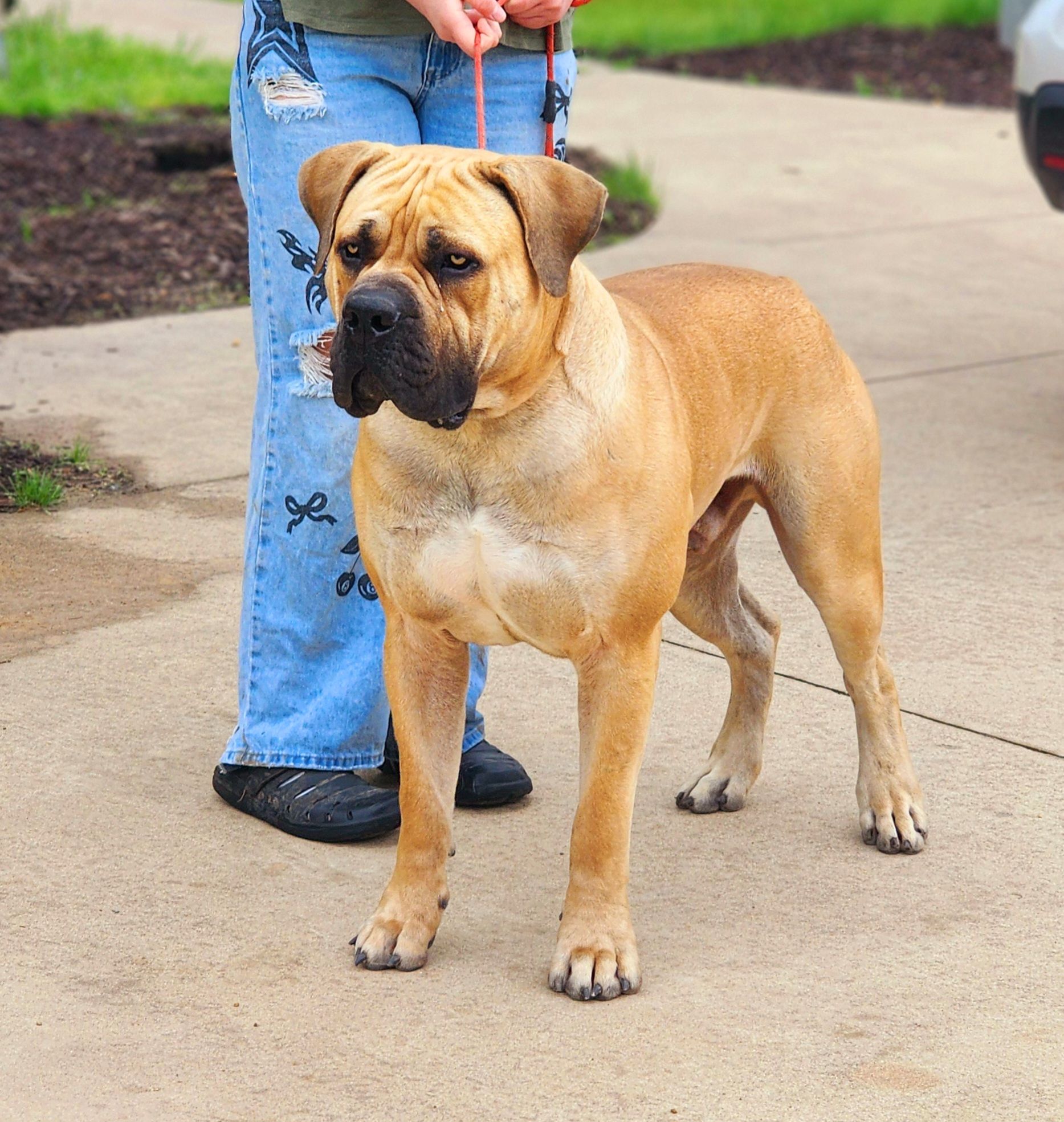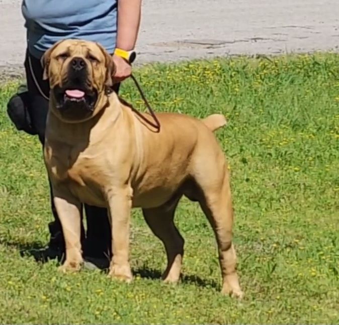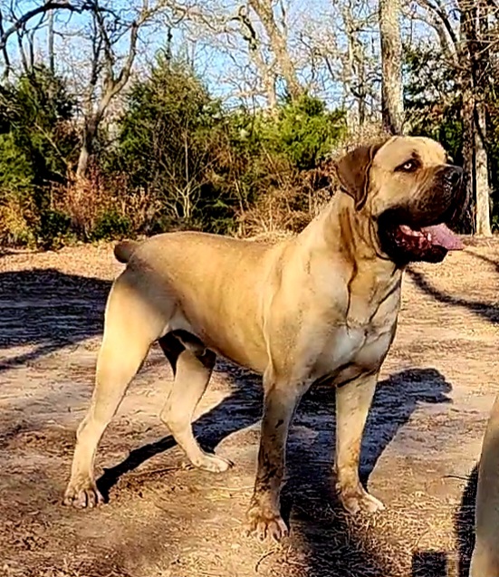 Anthem is co-owned with Morgan Jacoby. She has done a phenomenal job raising him. He has completed his AKC Championship in confirmation along with several other titles. He is just like his daddy and is a big LOVE! Super playful and silly, but with his size it makes him a "bull in a china shop". He has been raised on a farm and has shown great skill with chickens and goats. He loves to work and is driven to please. Excited to see what this stunning boy brings to the breed.