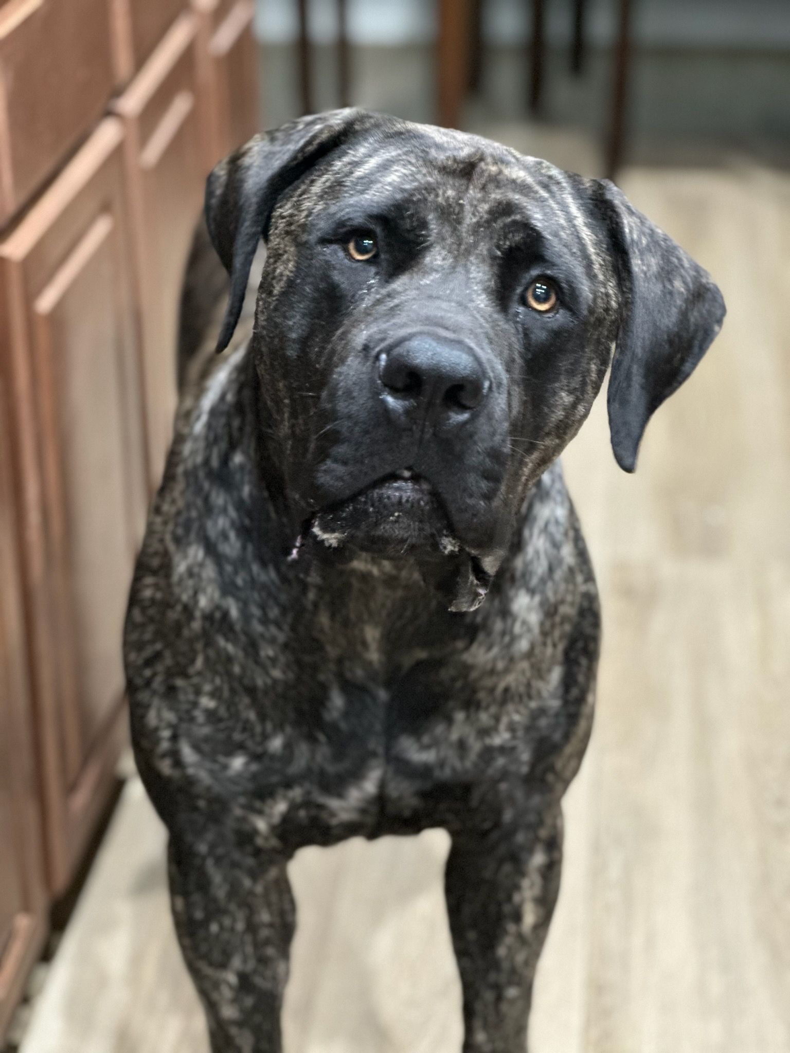 Structure Structure Structure! This boy has it all. He has a stunning topline, beautiful front, great angulation and he is in the awkward puppy stage still. So excited to see how he develops. He is a pogo stick and can jump fences if allowed too. He is playful and energetic and loves to get attention. He is incredibly athletic. He has great bone and I hope this will just continue to develop as he matures. All of this structure with a flashy brindle coat. I have high hopes for his future! Togo has started showing in the AKC show ring. We did not start him until he was near 18 months old and he has done really well adjusting to the sights and sounds. He has done very well so far and is on his way to his AKC Championship.