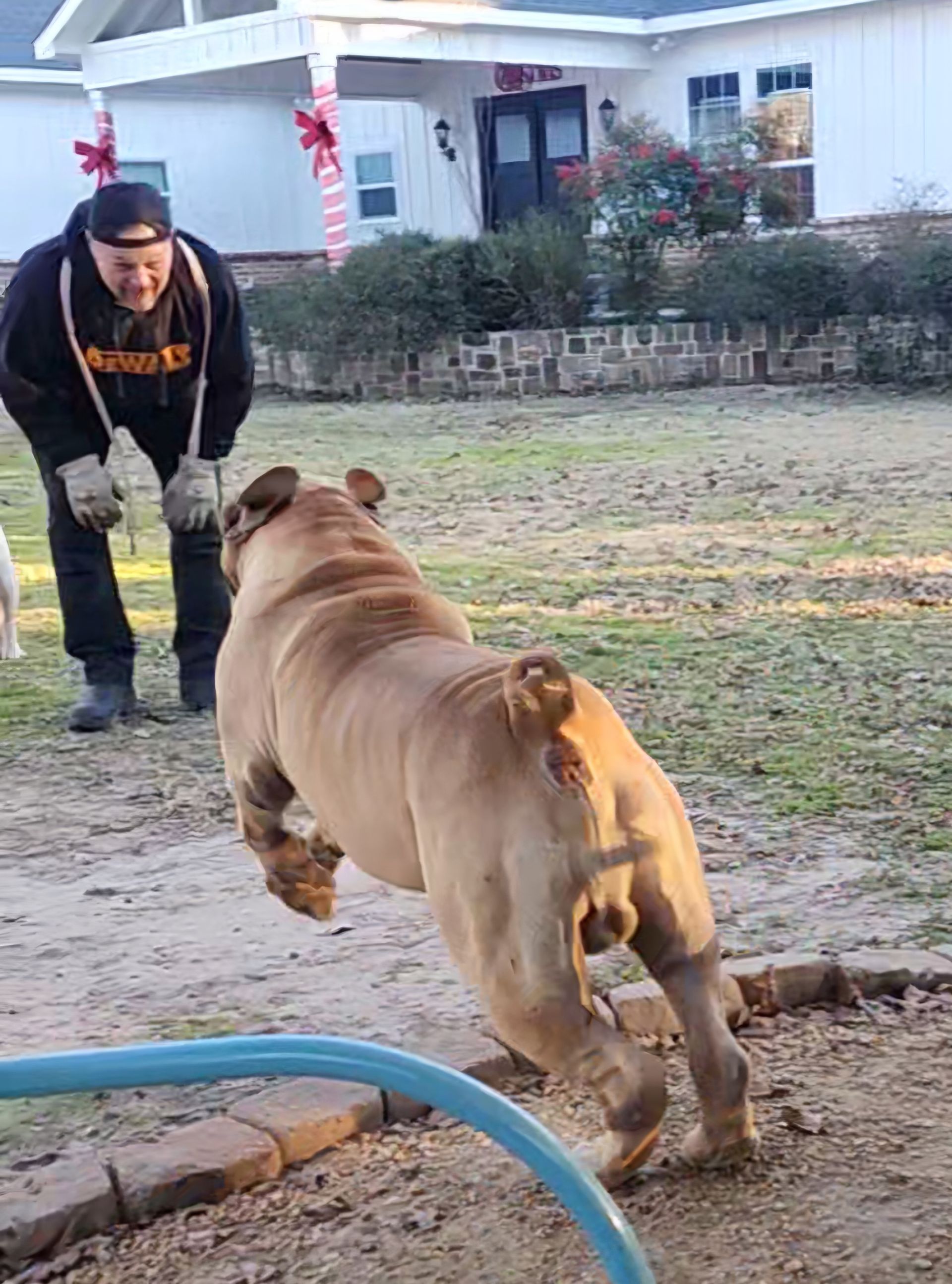 Archer is a stunning boy. He is sweet and loveable. He wants nothing more then to be with his humans. He has amazing structure and a beautiful head. Archer has developed into a fabulous male with the best traits from both his parents. He is thick and loveable and talks like his daddy. We were very proud of him at the 2024 Texas Sabbs Appraisal for acheiving Highest Appraised male and Dog of the Day! We look forward to including him in our breeding program this spring.