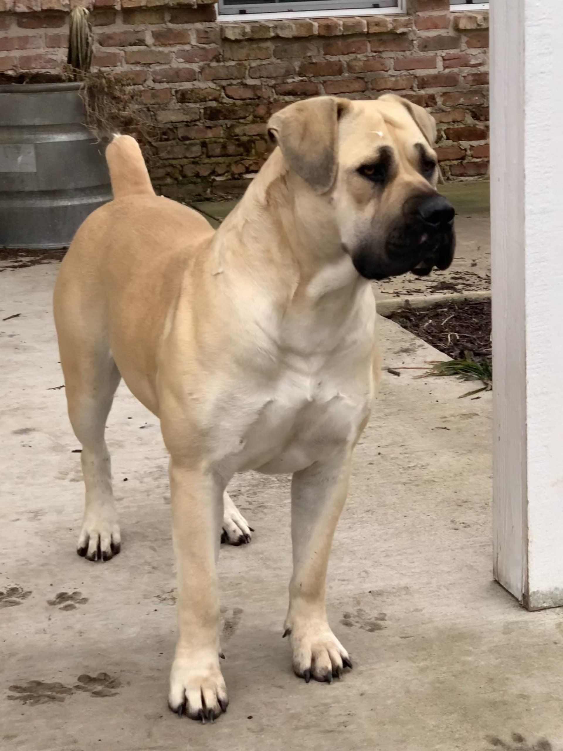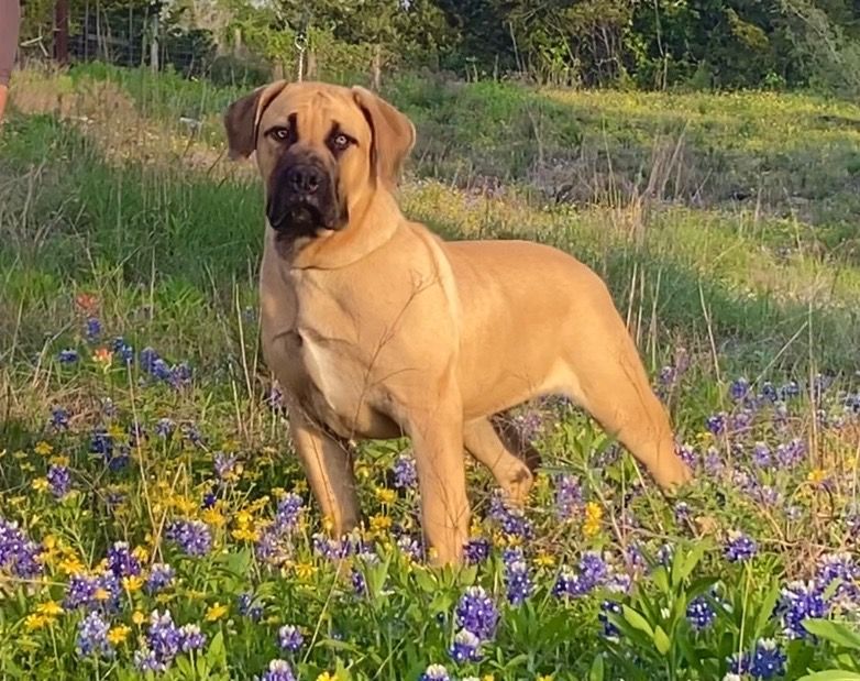 Sweet Magnolia is an adorable little girl. She is a piebald Boerboel. She will probably be deemed too much white to be appraised in SABBS but she had so many other qualities that I had to keep her. She has amazing structure and a beautiful head. She will hopefully bring a lot to the breeding program. I have not had a pieblad since my first litter almost 20 years ago. They will always be dear to my heart.