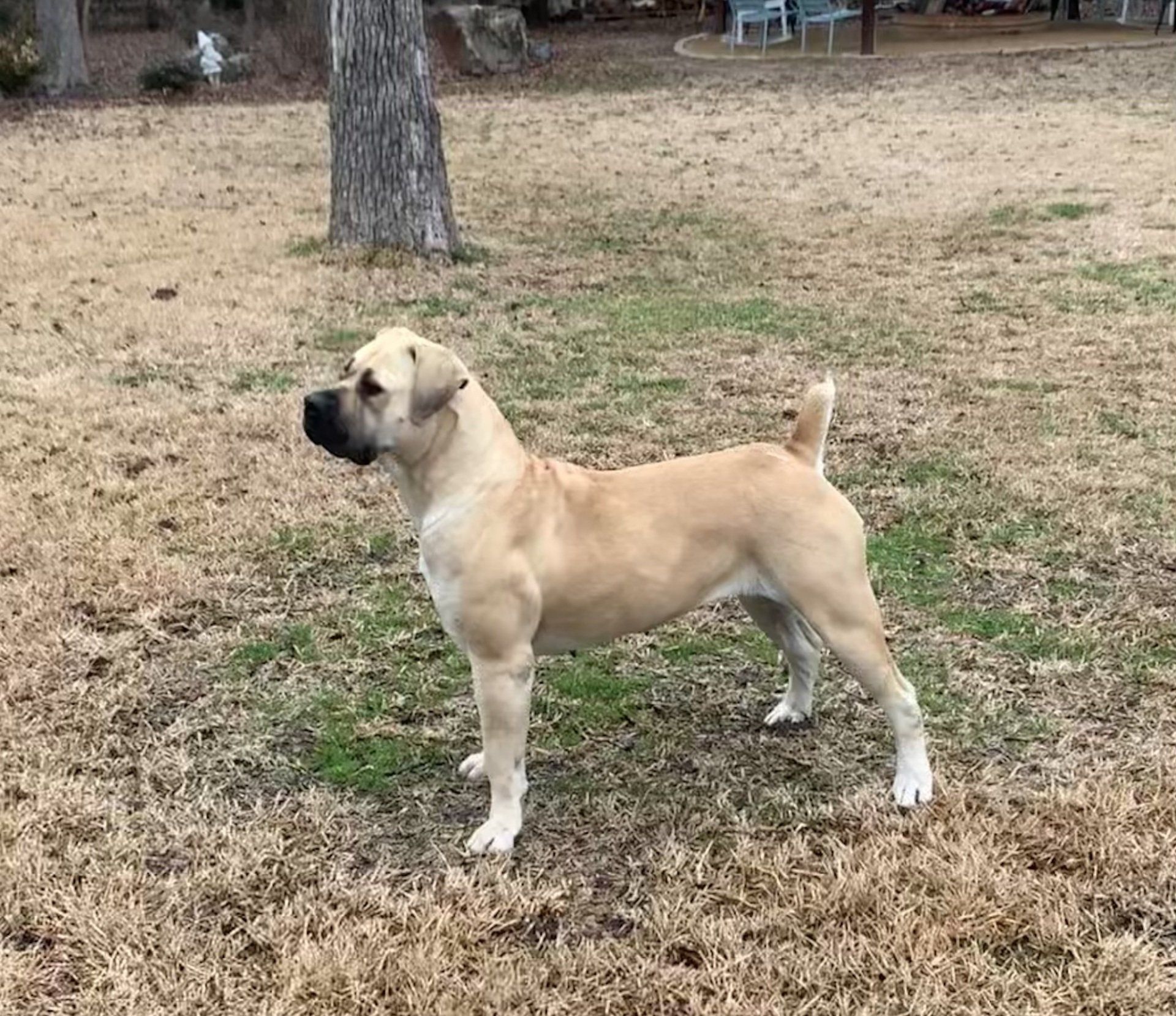 London is a stunning young adult. We are so excited to add her to our program. She is a tall girl with lovely musculature. Her temperament is lovely. She loves kids and other dogs. She is a happy and playful young dog. London did wonderfully on her health testing. Our next step is to get her appraised. She is a ball of energy! She loves to play and is incredibly athletic. She is great with other animals and as long as you like slobbery kisses she will love you! She is going to be a great addition to our program.