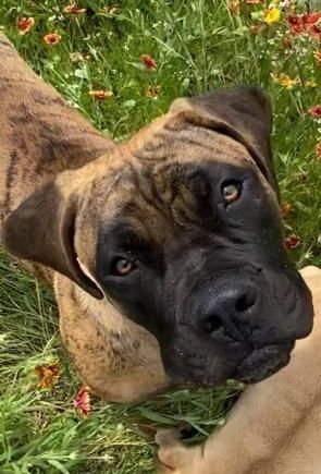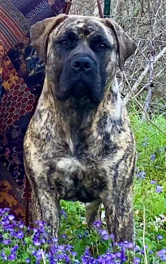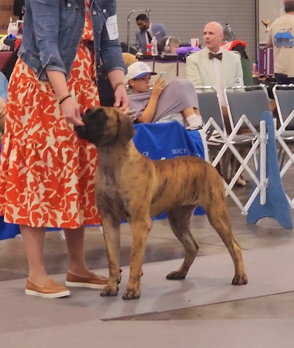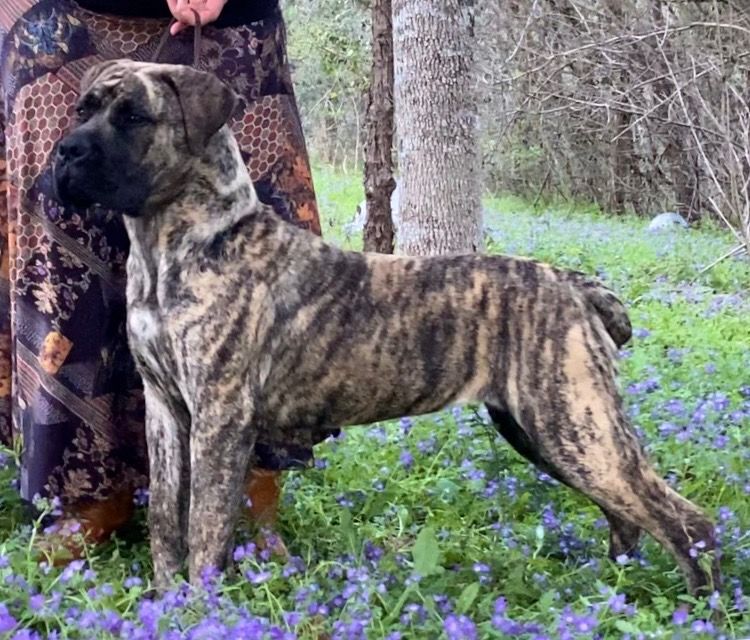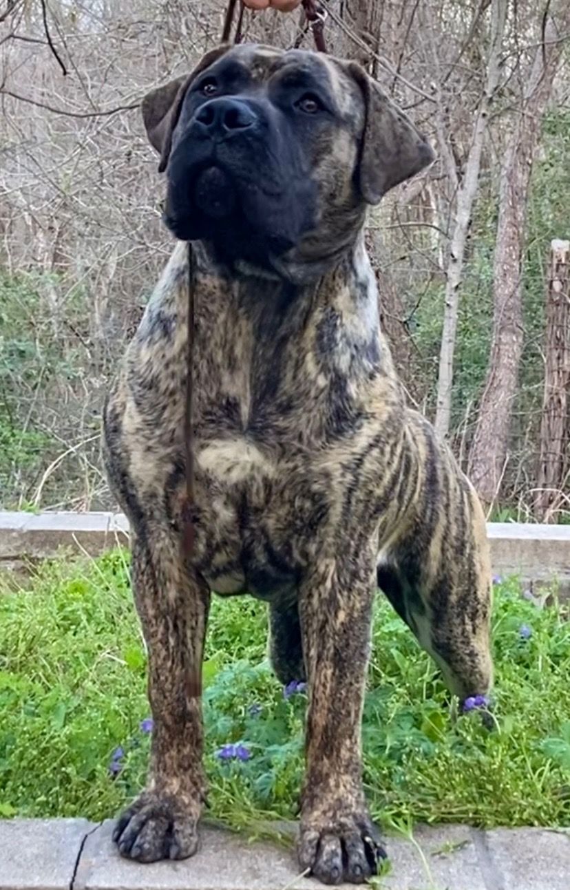 Solana is a striking girl. She is sweet, calm, and confident just like her mother. She truly has the best traits of each of her parents. She has lovely structure and a pretty brindle coat. She is a showstopper in every way. I cannot wait to watch this sweet girl develop.
