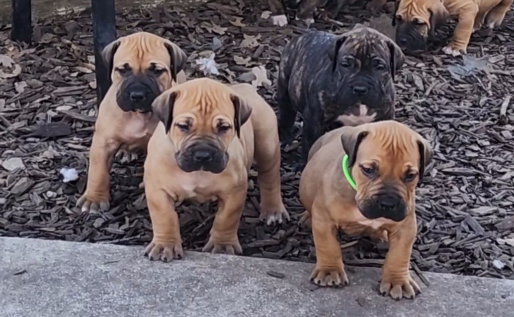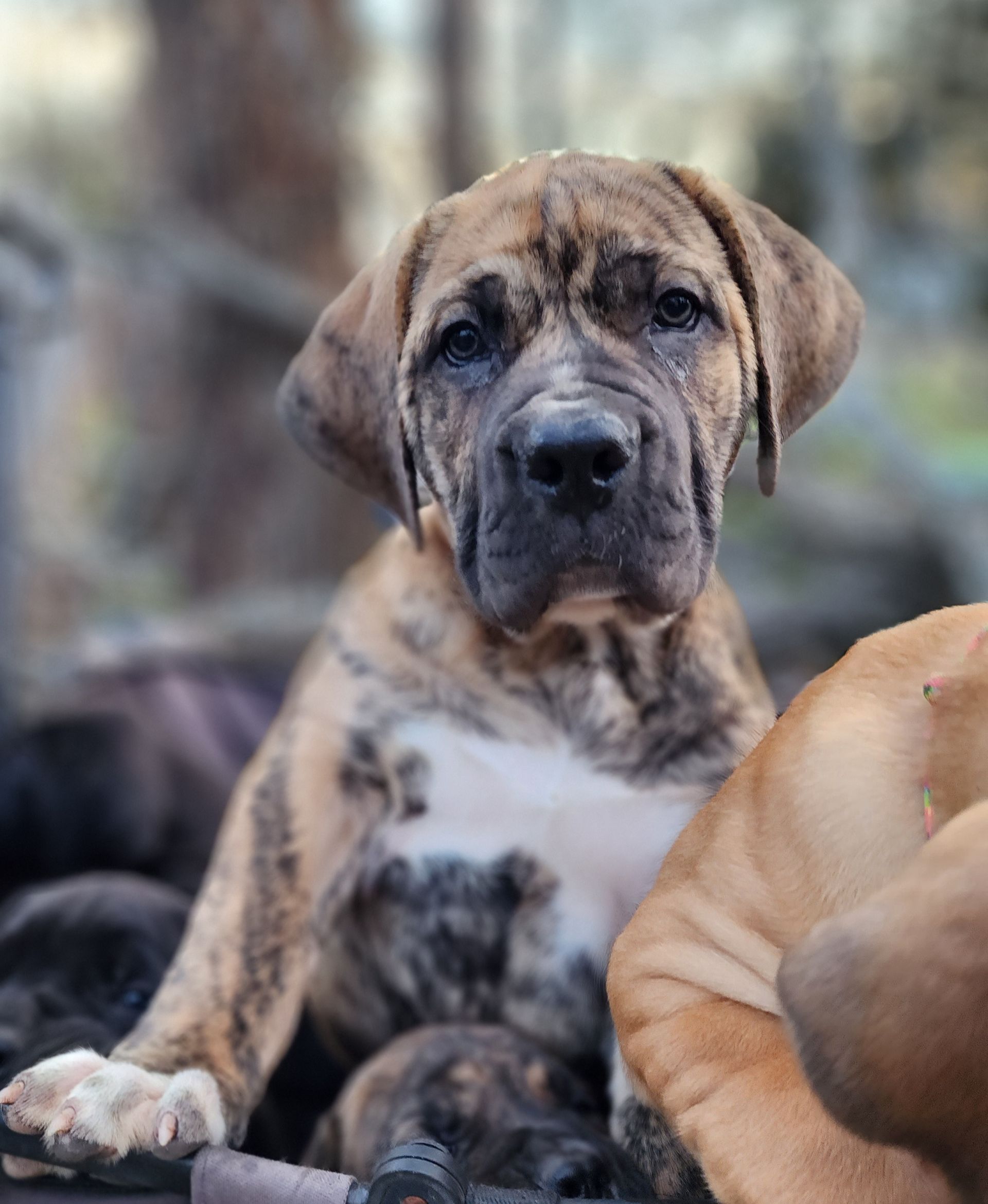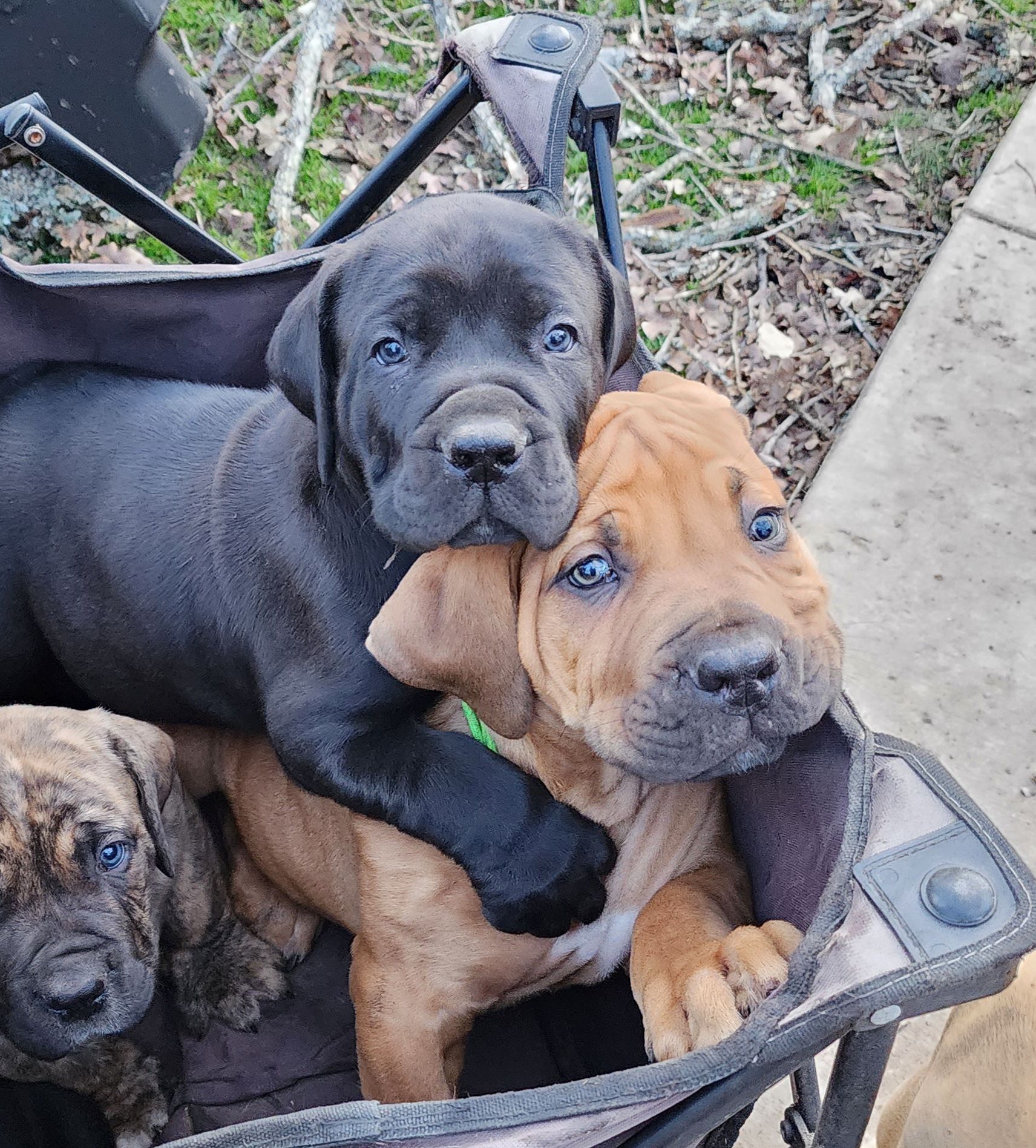 We are committed to breeding only the best Boerboels we can find. We spend months planning, researching pedigrees, reviewing appraisals, and speaking with other breeders to choose our pairings. Our dogs are all raised as part of our family. We strive to find the perfect partnership in conformation and temperament. Our puppies come socialized, acclimated to children and other animals, have received first vet checks, shots, de-wormed, and microchips.